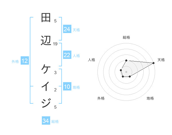 田辺 ケイジさんの天格は24画の5点!