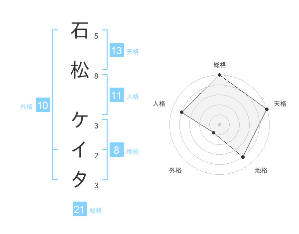 石松 ケイタさんを姓名の画数から五運を鑑定