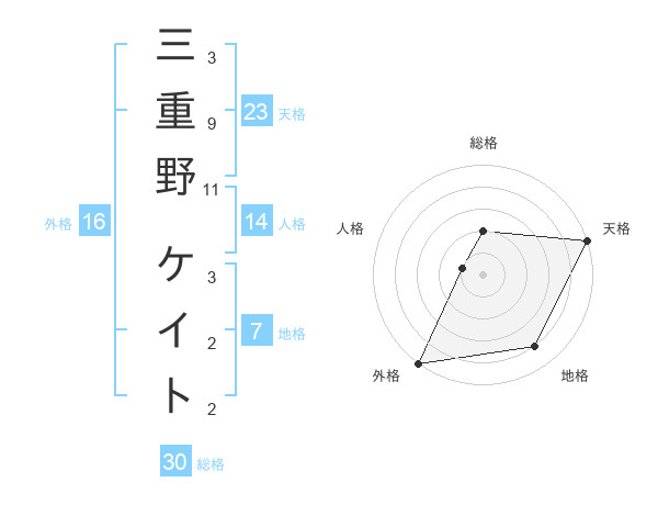 三重野 ケイトさんを姓名の画数から五運を鑑定