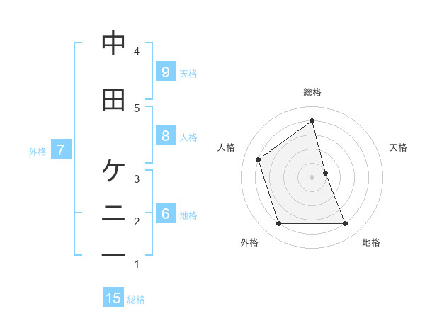 中田 ケニーさんを姓名の画数から五運を鑑定