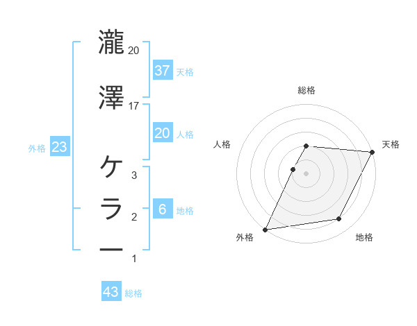 瀧澤 ケラーさんを姓名の画数から五運を鑑定