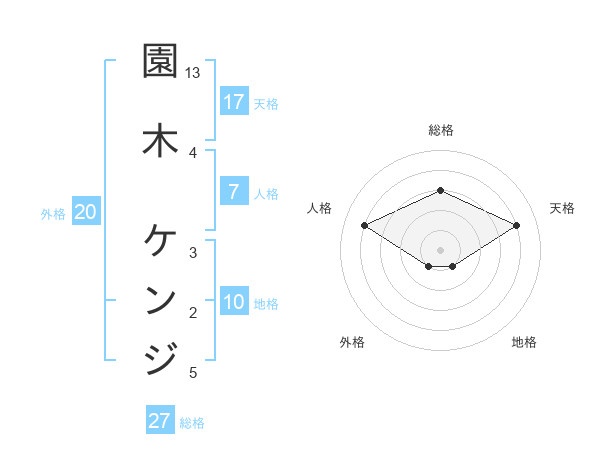 園木 ケンジさんを姓名の画数から五運を鑑定