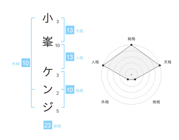 小峯 ケンジさんの天格は13画の5点!