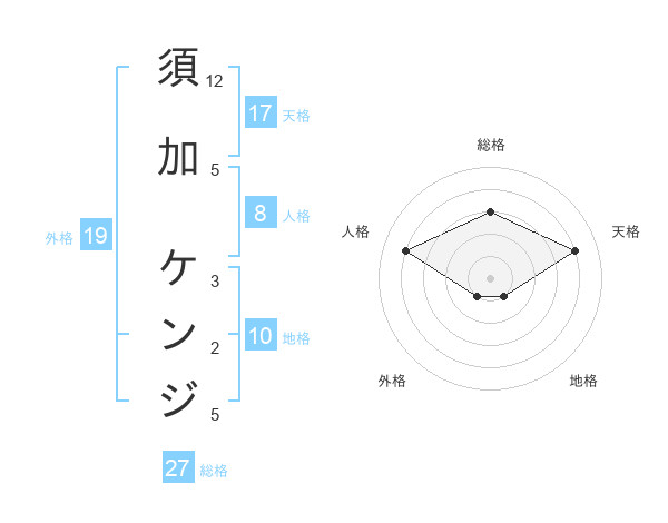 須加 ケンジさんの総格は27画の3点