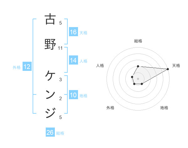 古野 ケンジさんを姓名の画数から五運を鑑定
