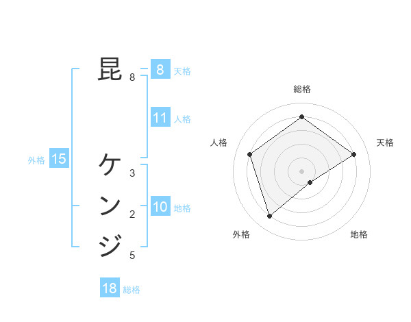 昆 ケンジさんを姓名の画数から五運を鑑定