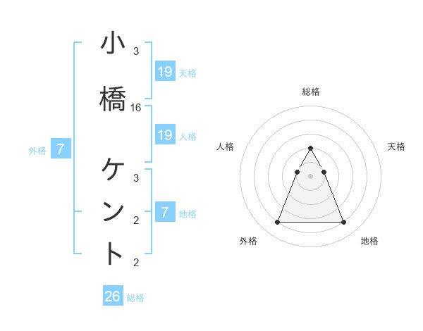 小橋 ケントさんを姓名の画数から五運を鑑定