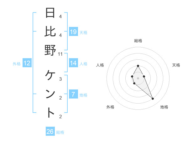 日比野 ケントさんを姓名の画数から五運を鑑定