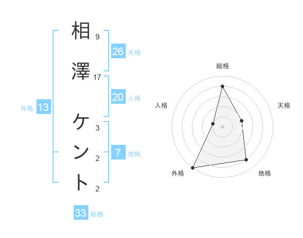 相澤 ケントさんを姓名の画数から五運を鑑定