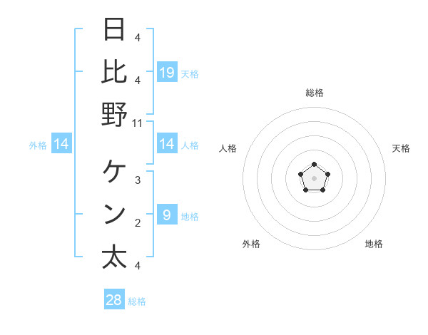 日比野 ケン太さんを姓名の画数から五運を鑑定