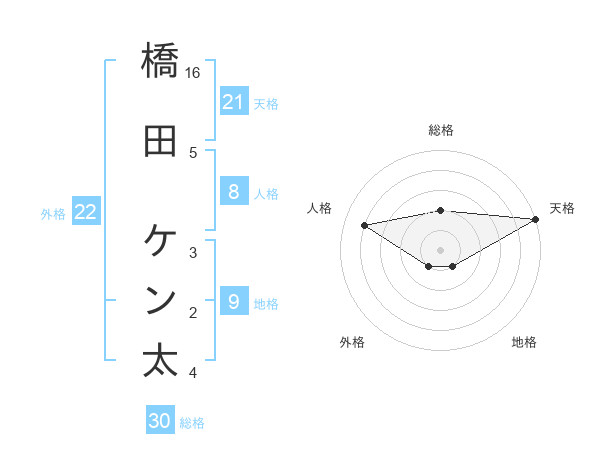 橋田 ケン太さんを姓名の画数から五運を鑑定