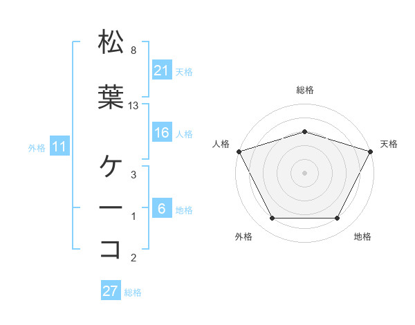 松葉 ケーコさんを姓名の画数から五運を鑑定