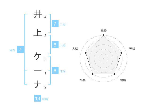 井上 ケーナさんを姓名の画数から五運を鑑定