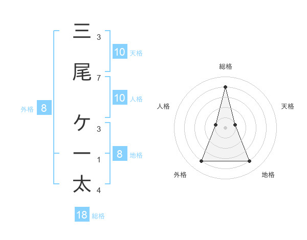 三尾 ケー太さんの総格は18画の4点!