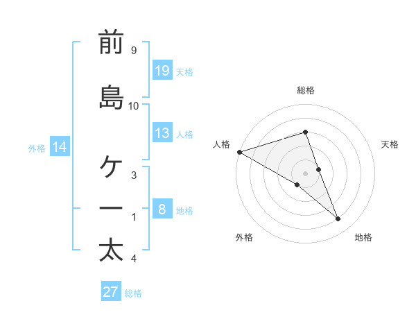 前島 ケー太さんを姓名の画数から五運を鑑定
