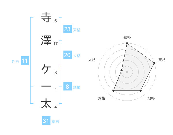 寺澤 ケー太さんを姓名の画数から五運を鑑定