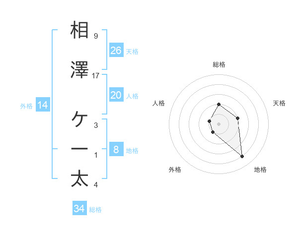 相澤 ケー太さんの地格は8画の4点!