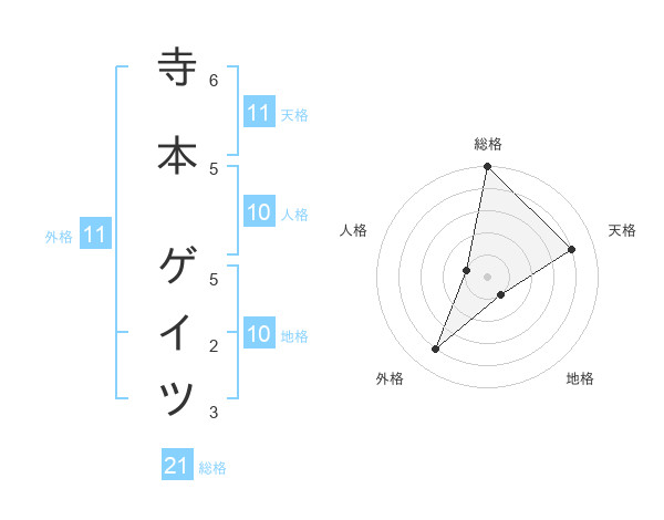 寺本 ゲイツさんを姓名の画数から五運を鑑定