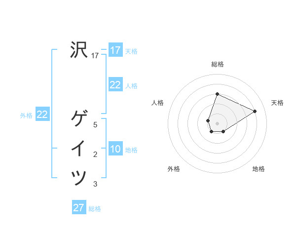 沢 ゲイツさんの天格は17画の4点!