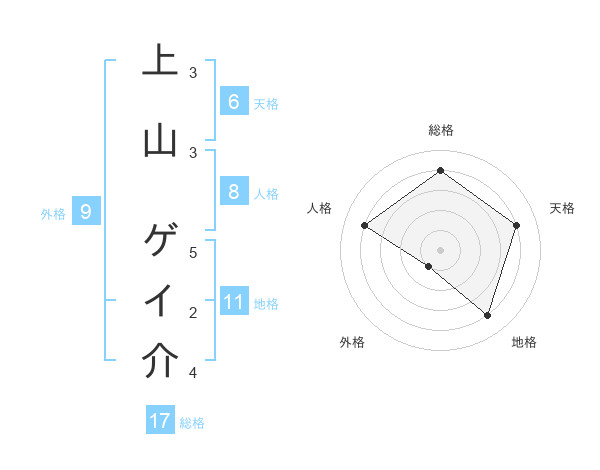 上山 ゲイ介さんを姓名の画数から五運を鑑定