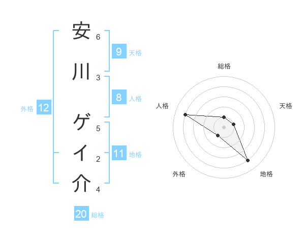 安川 ゲイ介さんの総格は20画の1点!