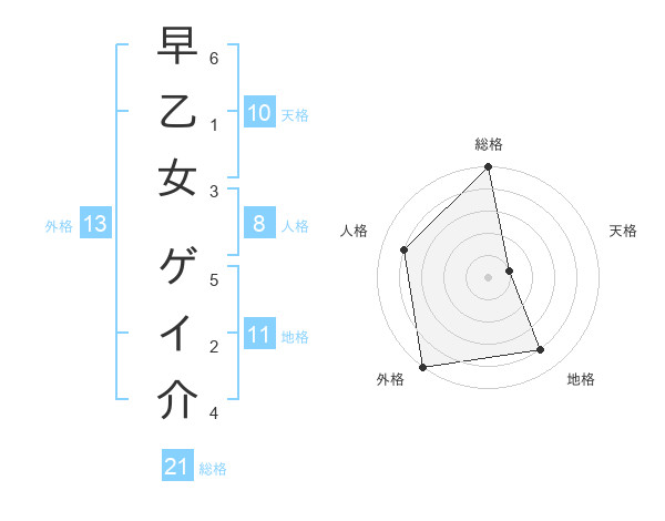 早乙女 ゲイ介さんを姓名の画数から五運を鑑定