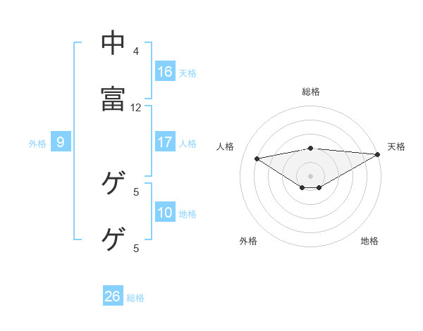 中富 ゲゲさんの天格は16画の5点!