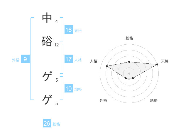 中硲 ゲゲさんの地格は10画の1点!