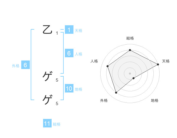 乙 ゲゲさんの総格は11画の4点!