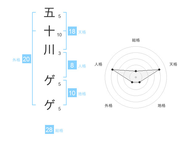 五十川 ゲゲさんを姓名の画数から五運を鑑定