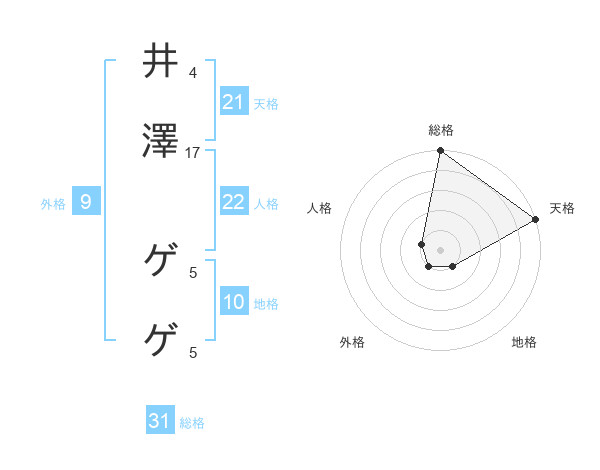 井澤 ゲゲさんを姓名の画数から五運を鑑定