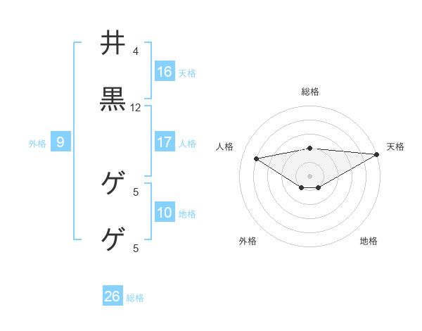 井黒 ゲゲさんの天格は16画の5点!