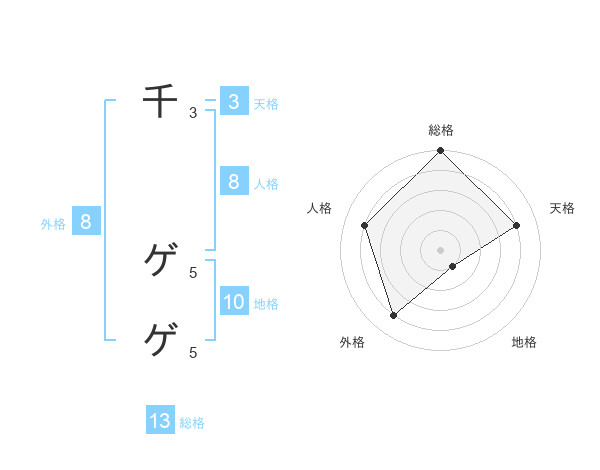 千 ゲゲさんを姓名の画数から五運を鑑定