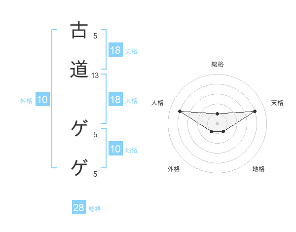 古道 ゲゲさんを姓名の画数から五運を鑑定