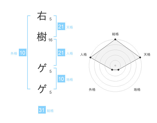 右樹 ゲゲさんを姓名の画数から五運を鑑定