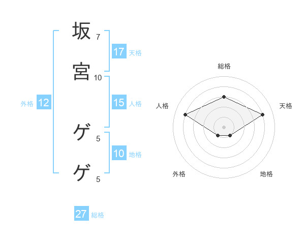 坂宮 ゲゲさんの総格は27画の3点!