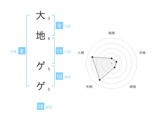 大地 ゲゲさんを姓名の画数から五運を鑑定