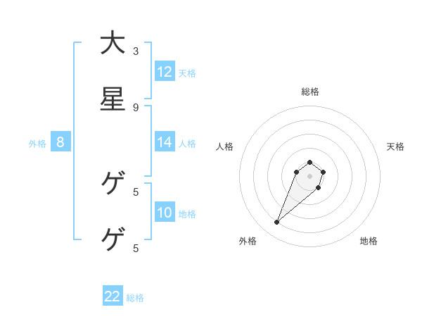 大星 ゲゲさんの総格は22画の1点!