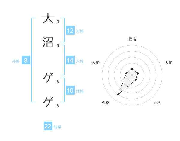 大沼 ゲゲさんの総格は22画の1点!