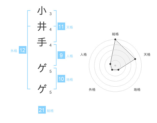 小井手 ゲゲさんの総格は21画の5点!