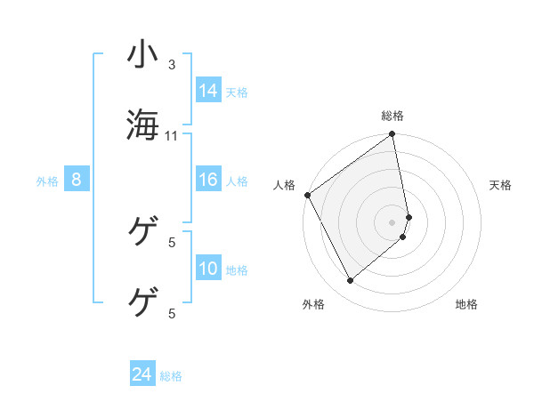 小海 ゲゲさんの総格は24画の5点!