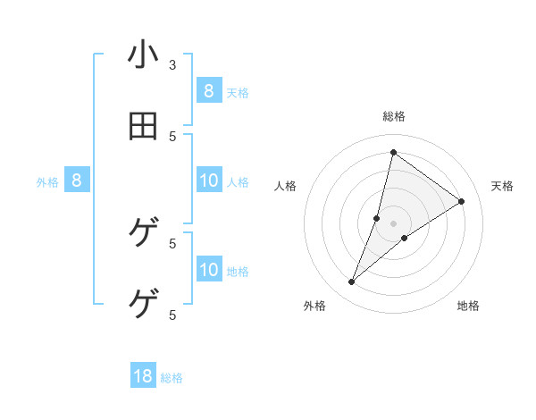 小田 ゲゲさんの天格は8画の4点!