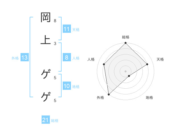 岡上 ゲゲさんを姓名の画数から五運を鑑定