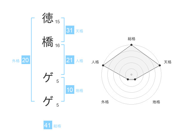 徳橋 ゲゲさんの天格は31画の5点!