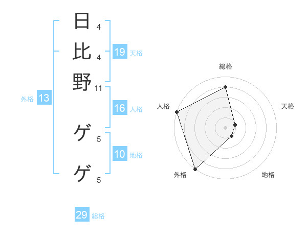 日比野 ゲゲさんを姓名の画数から五運を鑑定
