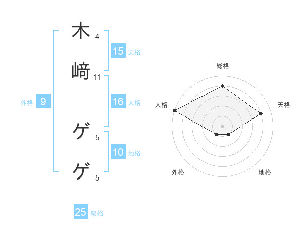 木﨑 ゲゲさんを姓名の画数から五運を鑑定