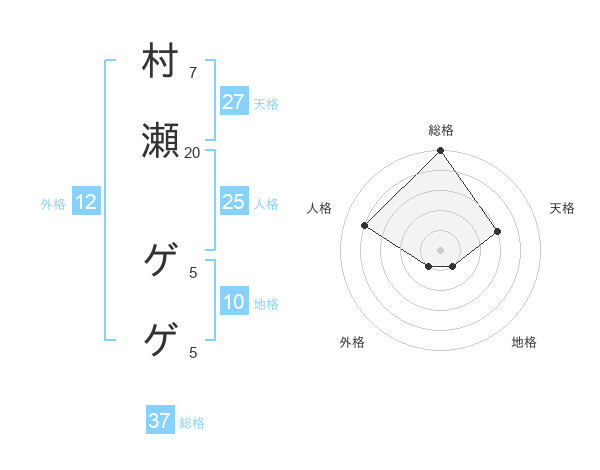 村瀬 ゲゲさんを姓名の画数から五運を鑑定