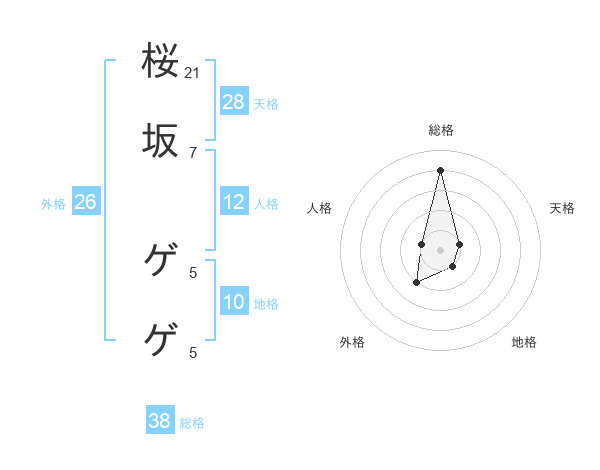 桜坂 ゲゲさんを姓名の画数から五運を鑑定