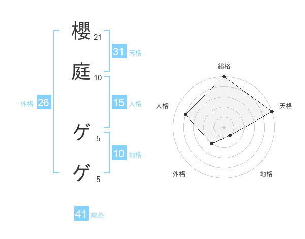 櫻庭 ゲゲさんの総格は41画の5点!