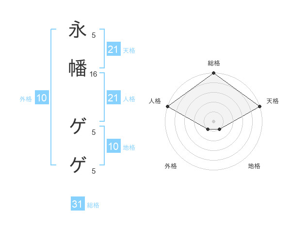 永幡 ゲゲさんの人格は21画の5点!